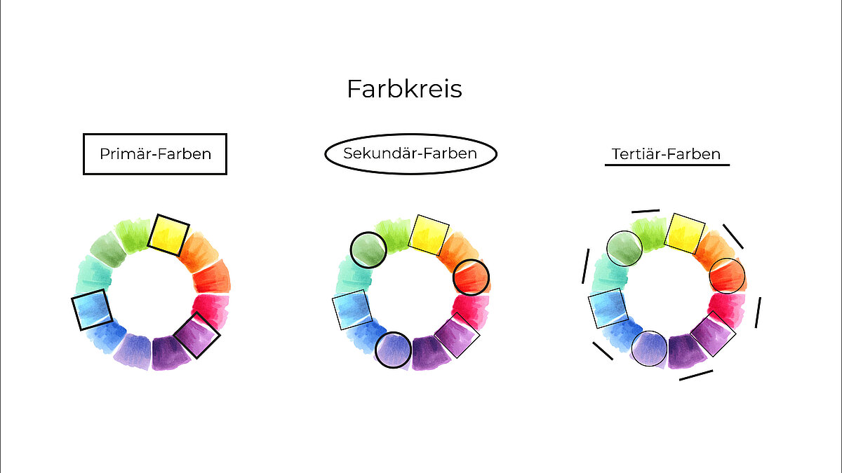 Sekundärfarben sie die Farben die entstehen, wenn man zwei der Grundfarben 1:1 mischt.