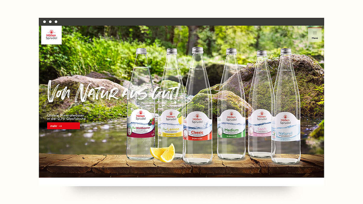 HöllenSprudel ist ein mittelständisches Familienunternehmen, mit natürlichem Mineralwasser direkt aus der Region. Mit eigenem Wasserkraftwerk und umweltschonenden Verfahren produziert das Unternehmen jährlich 70 Millionen Flaschen seiner beliebten Getränke. Mitten im malerischen Höllental in Oberfranken gelegen, lädt das Unternehmen seine Besucher ein, die Schönheit der Natur zu entdecken und die Ruhe der Umgebung zu genießen. Um die Online-Präsenz zu verbessern und den Kundenstamm zu erweitern, plante das Unternehmen die Neugestaltung seiner Website.
