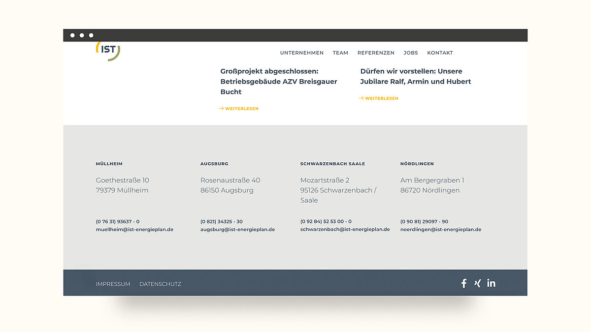 Im Bereich der Fachplanung der technischen Gebäudeausrüstung und Energieberatung ist die IST EnergiePlan GmbH ein etabliertes Unternehmen. Um die Online-Präsenz zu verbessern und den Kundenstamm zu erweitern, plant das Unternehmen die Neugestaltung seiner Website. So wie sich IST um alle gebäudetechnischen Belange kümmert, übernimmt Bitzinger alles rund um das Thema Web. Langjährige Erfahrung und ein offener Umgang miteinander sind nur zwei der Punkte, die unsere beiden Unternehmen miteinander verbinden.